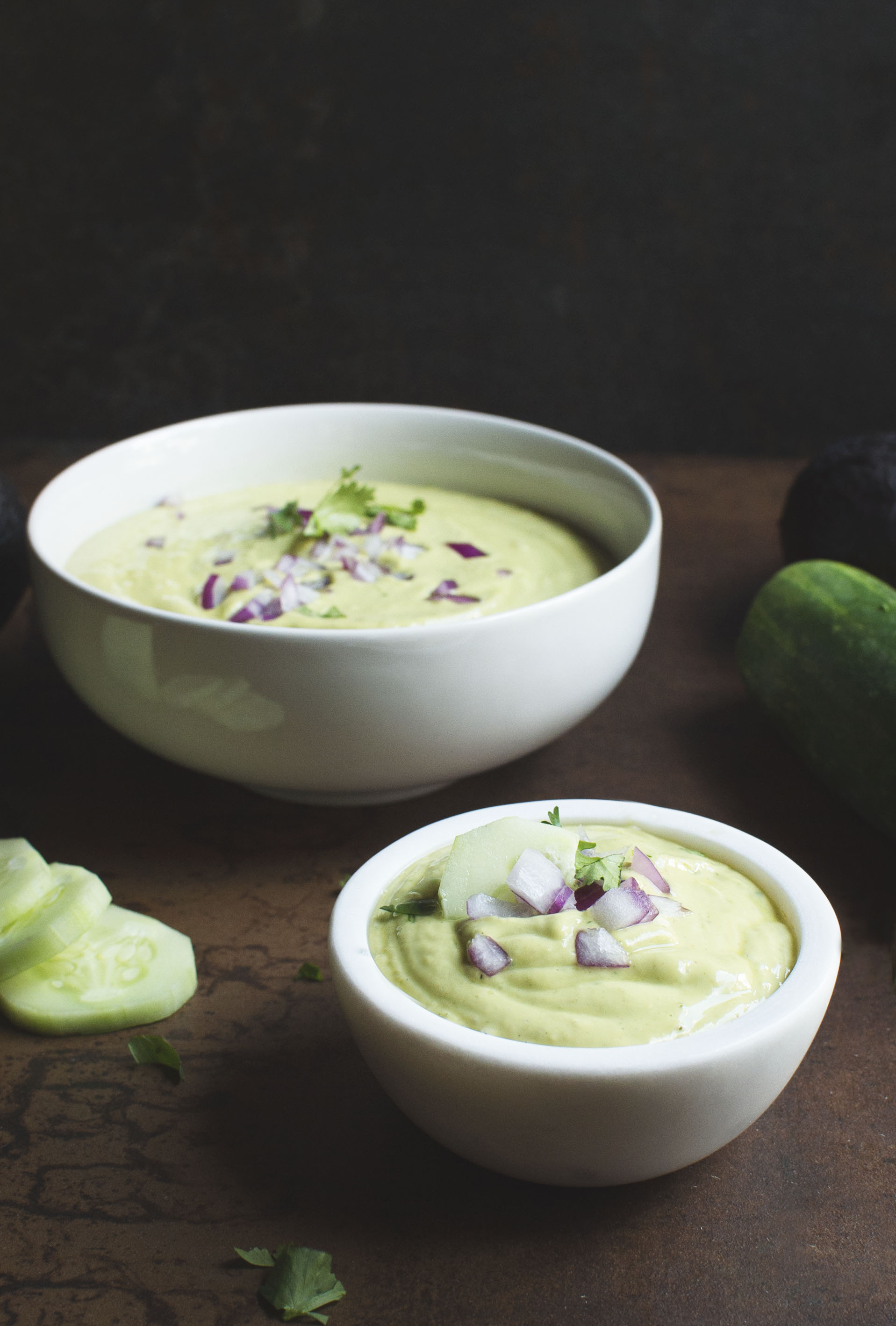 Okay I just saw this and was floored. I made practically the same recipe as you, and posted just the other day! Mine is a gazpacho with avocado and cucumber, and has no dairy. But wow. Our brains apparently work much the same way when it comes to avocados!