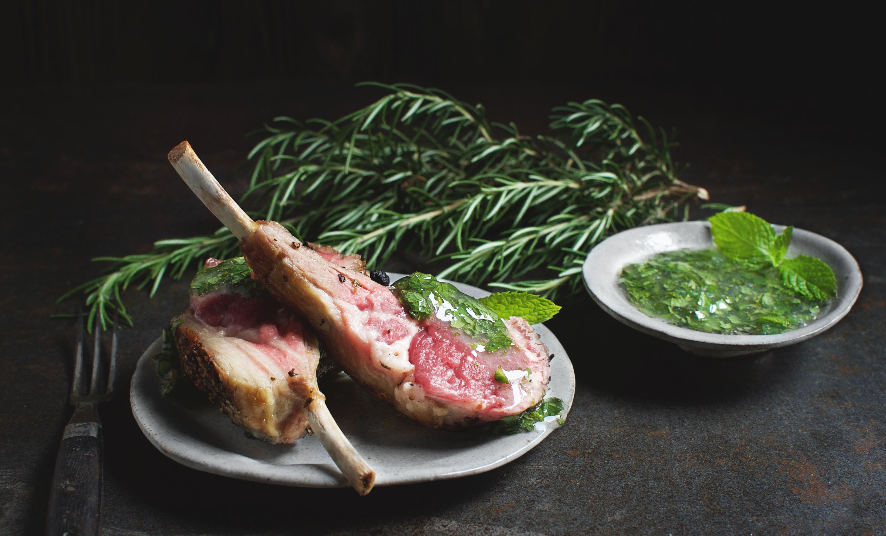 This recipe, as with many of my recipes, is the brain child of a craving combined with desperation. I’m not sure who thought of combining lamb with mint jelly, but they found a combination so good it has lasted for centuries. It’s a flavor medley that I love, but of course, mint jelly has loads of sugar, so I can no longer justify eating it. Still lamb without the mint jelly just isn’t the same to me, so I went to work in the kitchen and created this recipe.