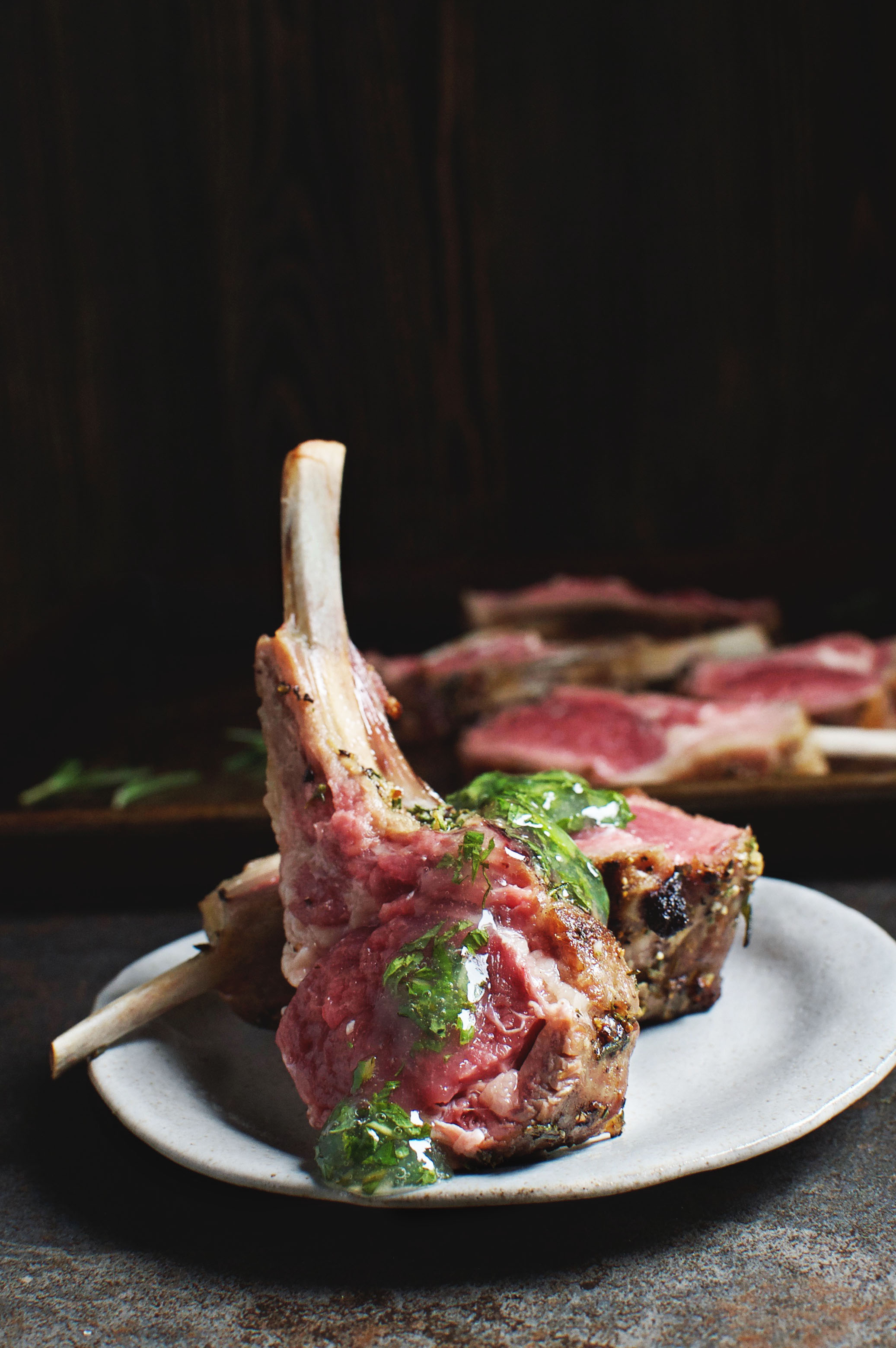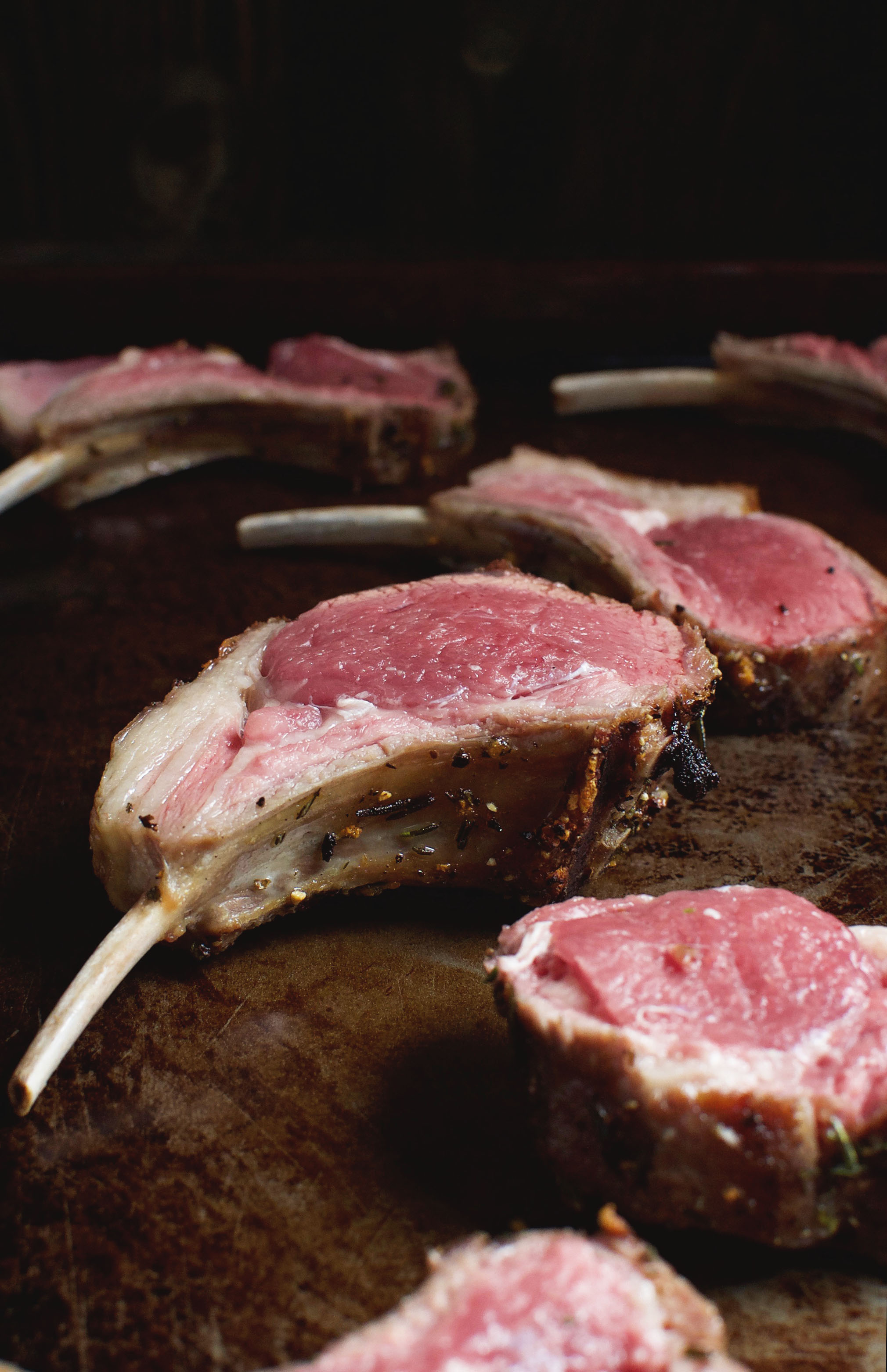 Allow lamb to rest for 5-10 minutes before slicing into chops.