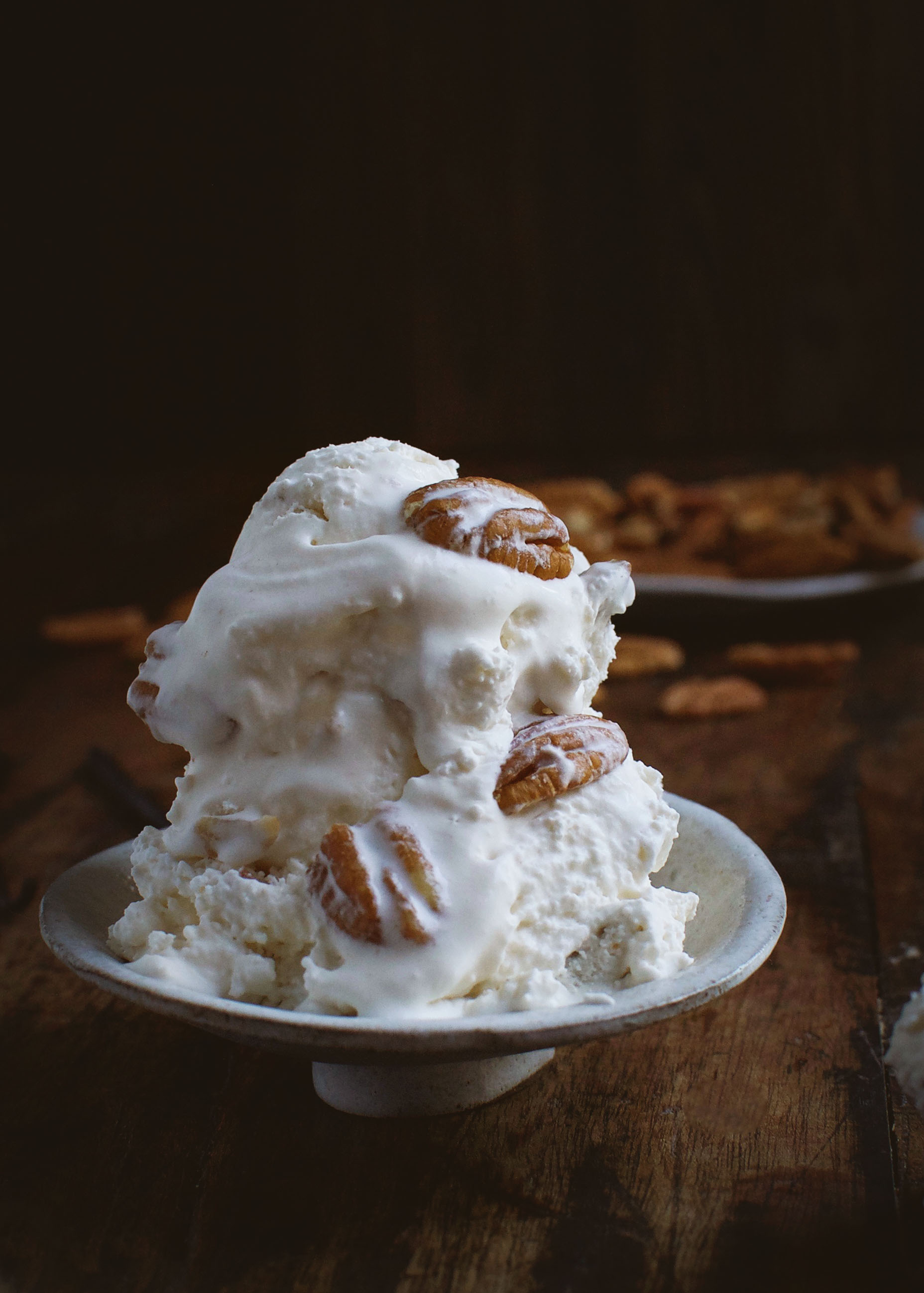 In this recipe, I very lightly toast the pecans in butter before adding them to the ice-cream. I toast them just enough to bring out the flavors, but not enough to make the bitter or harsh. If you don’t like your pecans toasted or are concerned about breaking down the oils in the pecans, you can skip this step. The ice-cream will still be delicious.