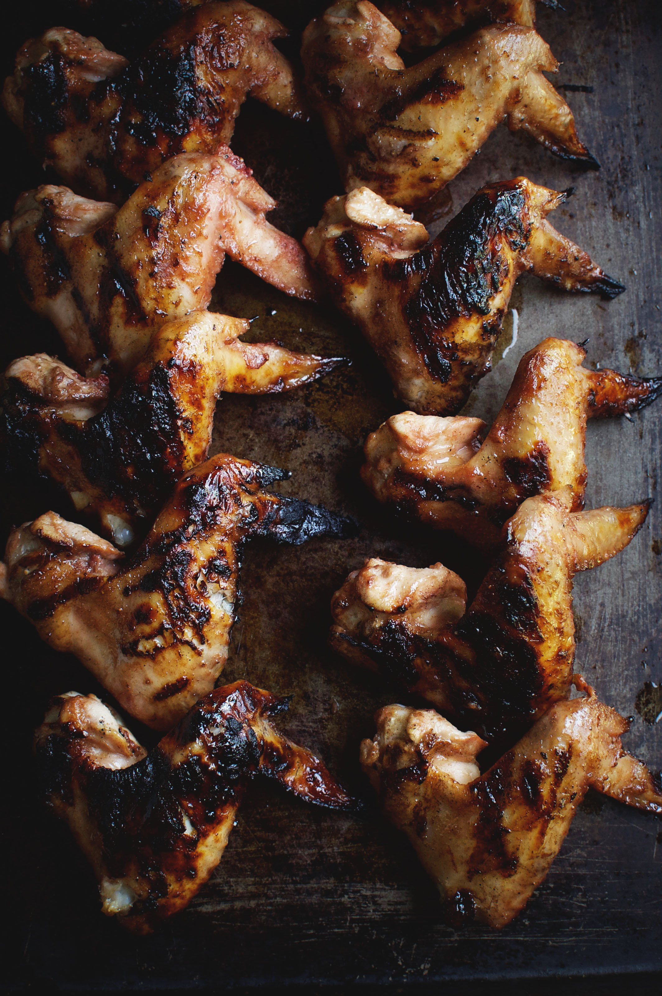 Remove wings from refrigerator about a half hour before grilling to allow them to warm to room temperature. Preheat grill to high heat.